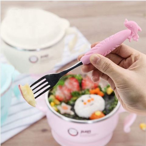 סט כפיות ומזלג סיליקון ג'ל בעיצוב בעלי חיים לילדים כלי תינוק מנירוסטה לשימוש מטבח לפעוטות וילדים